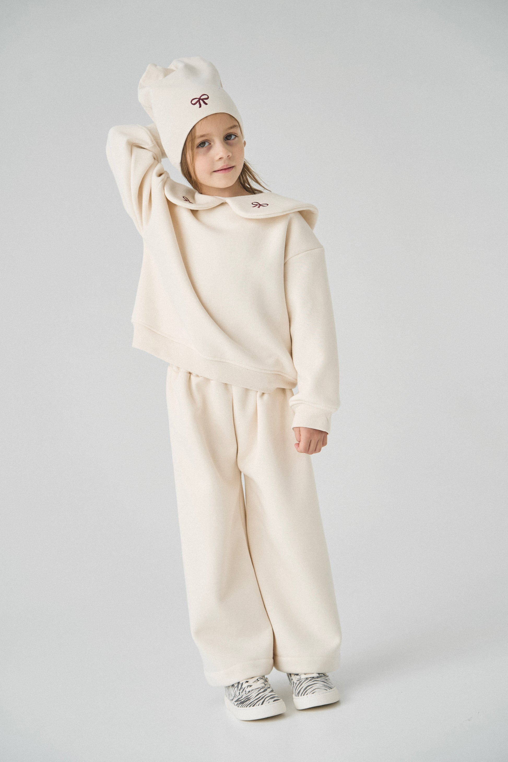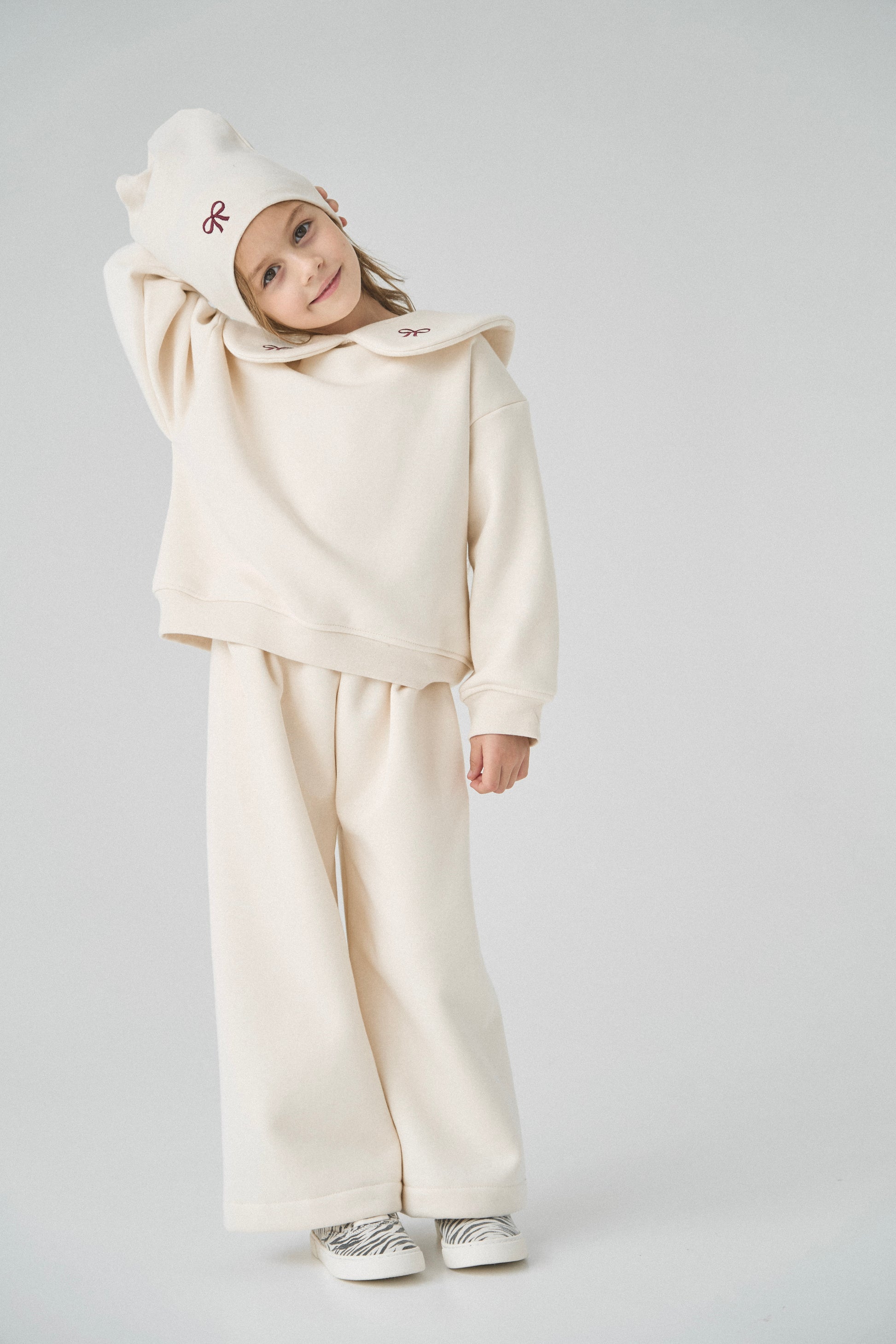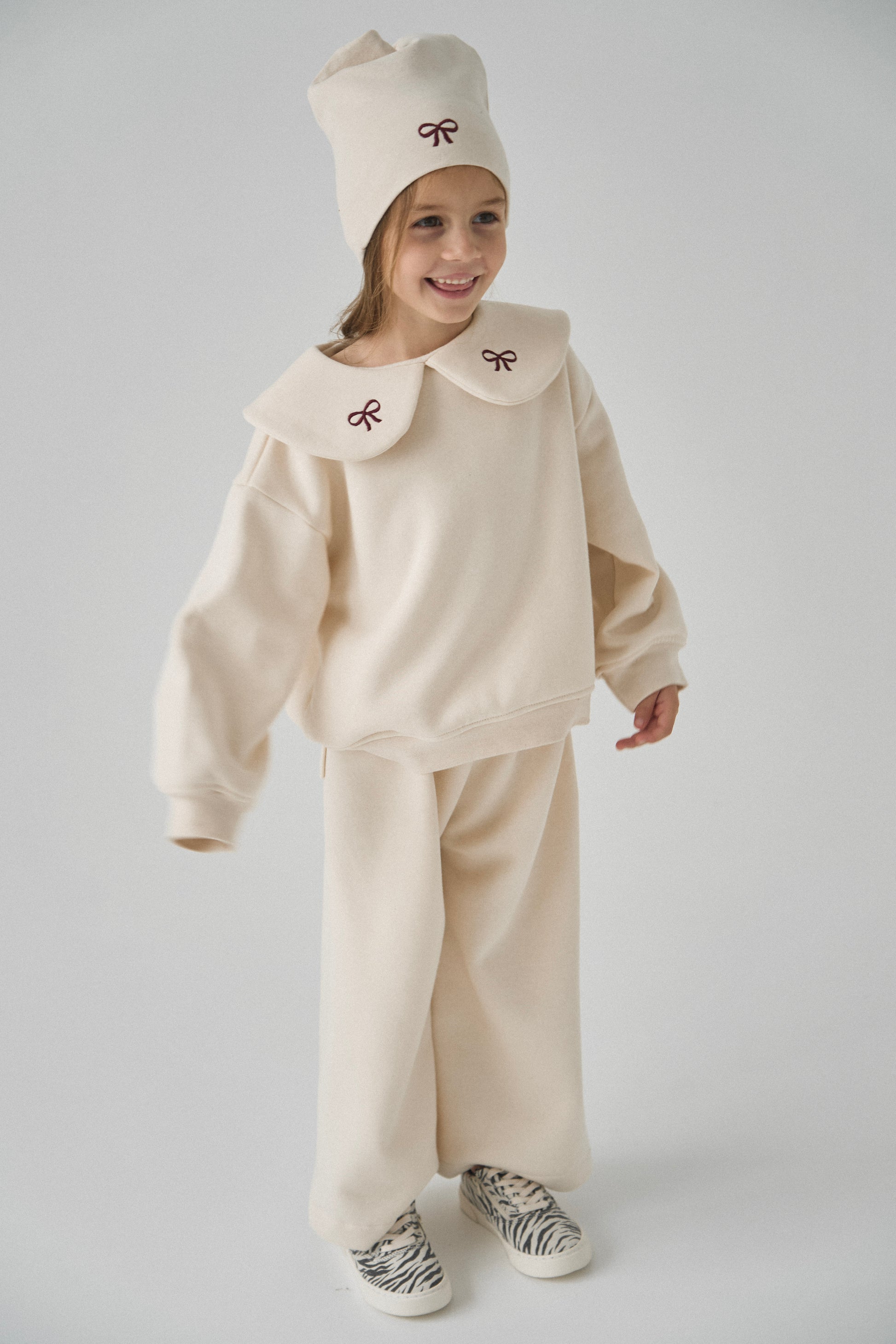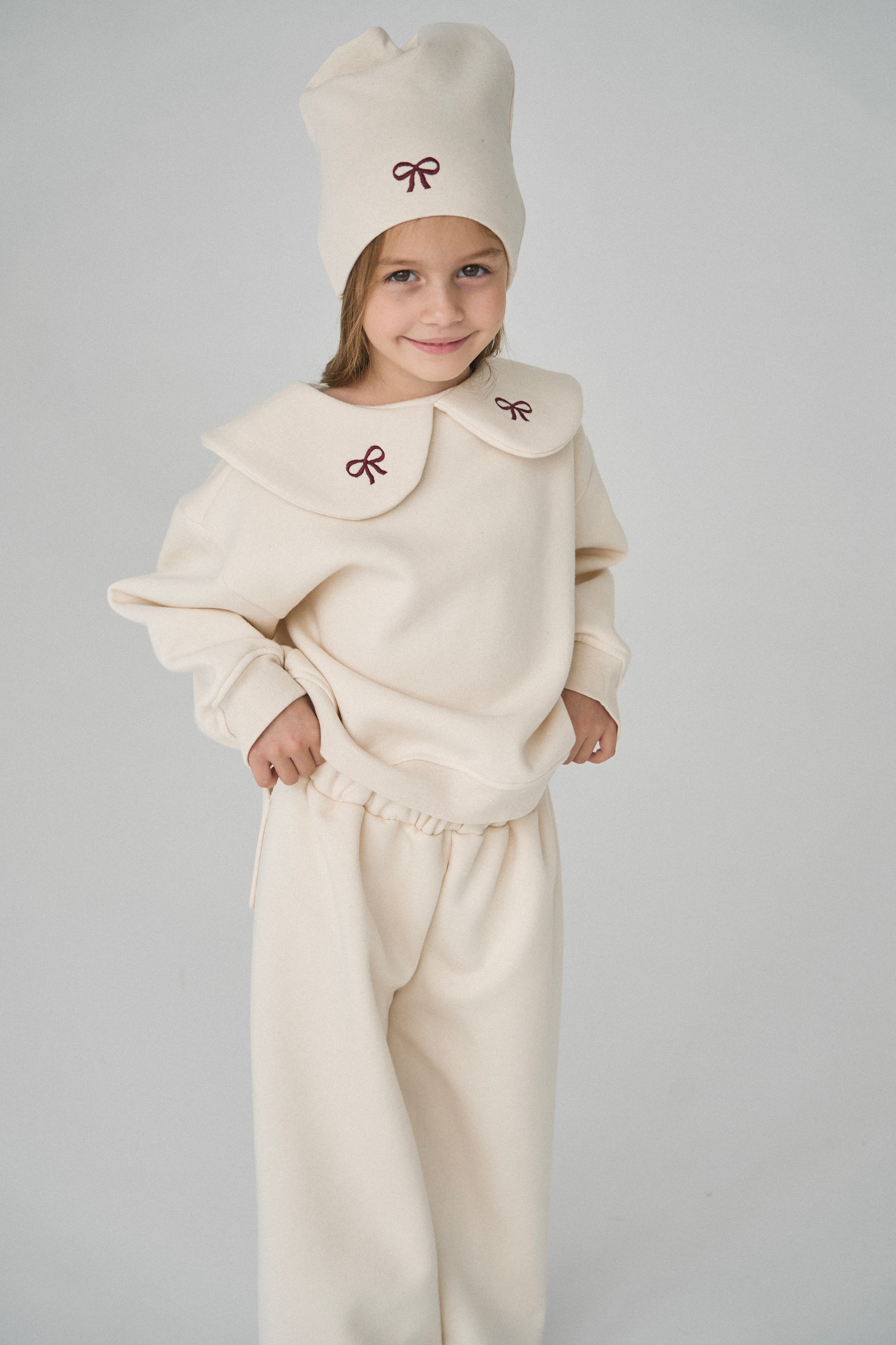 Szerszy, niekrępujący ruchów krój. Haft z kokardką na przodzie, miękka rozciągliwa guma w pasie.