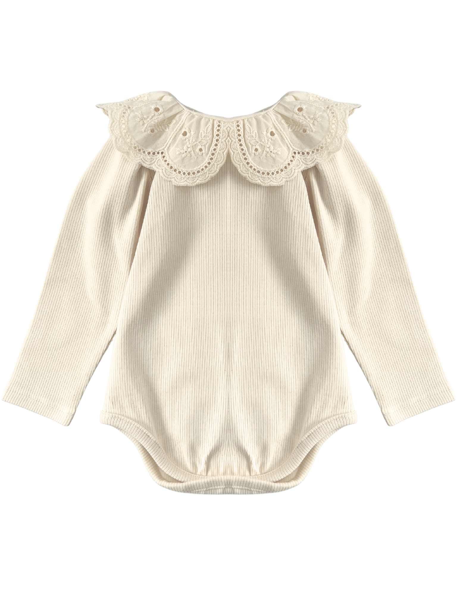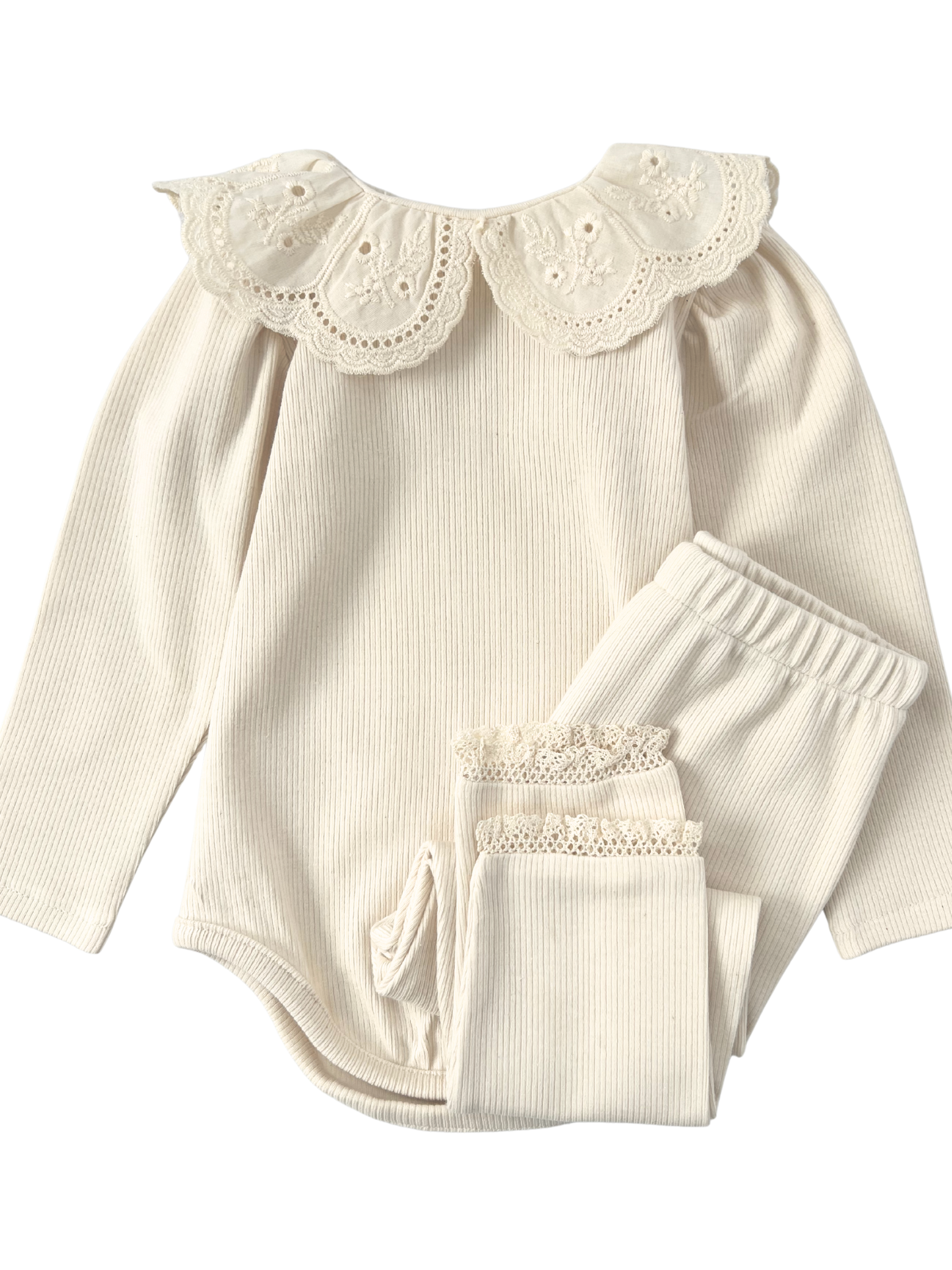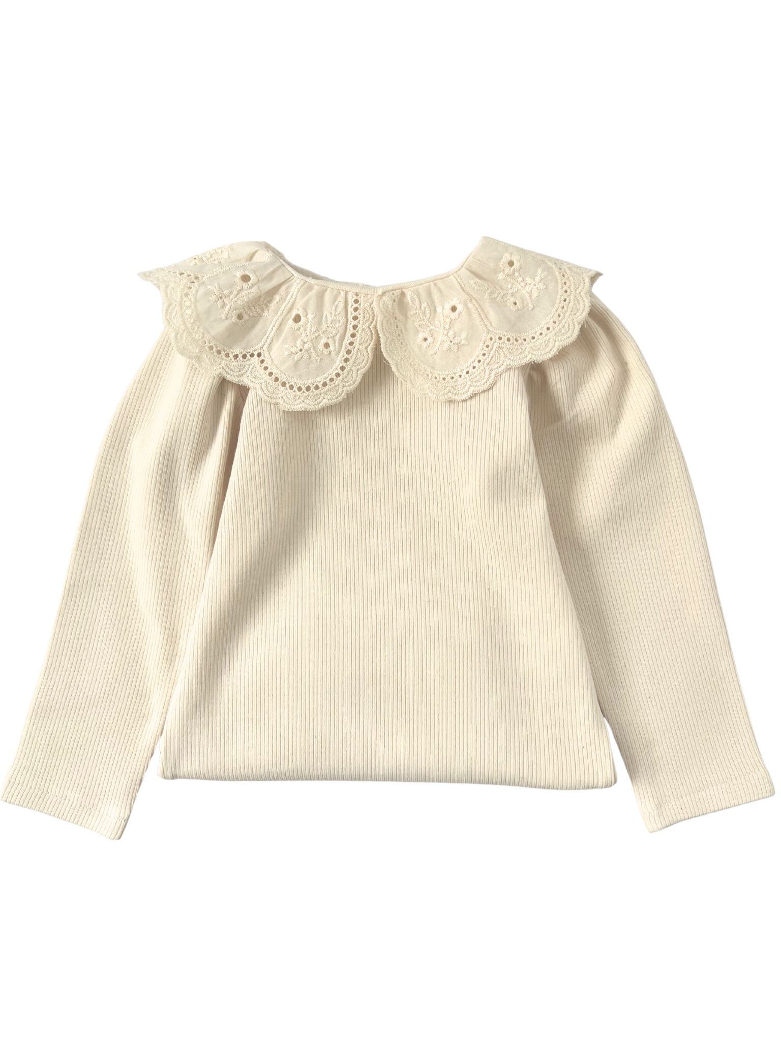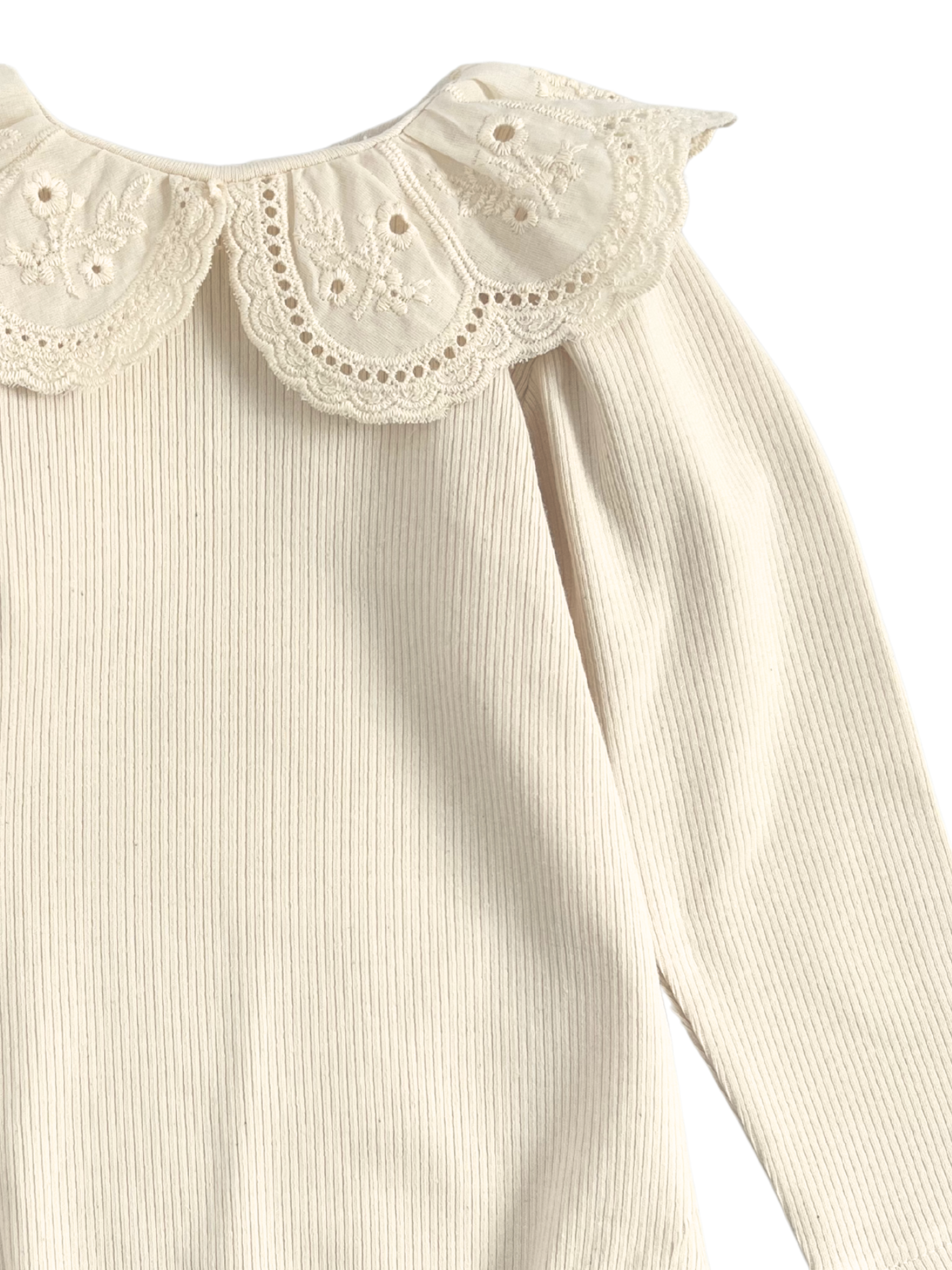 Prążkowane body/bluzka z koronkowym kołnierzykiem -kremowe
