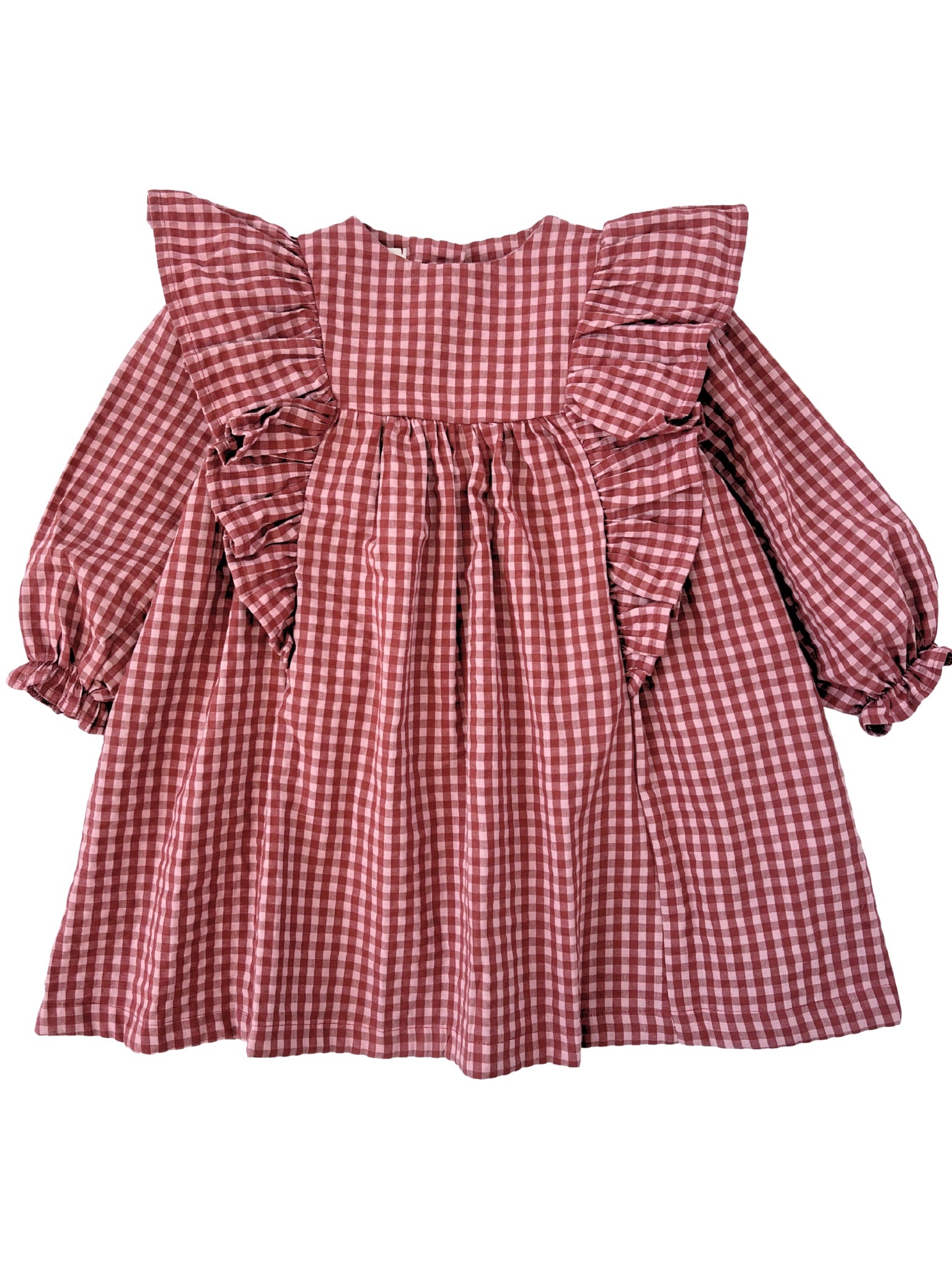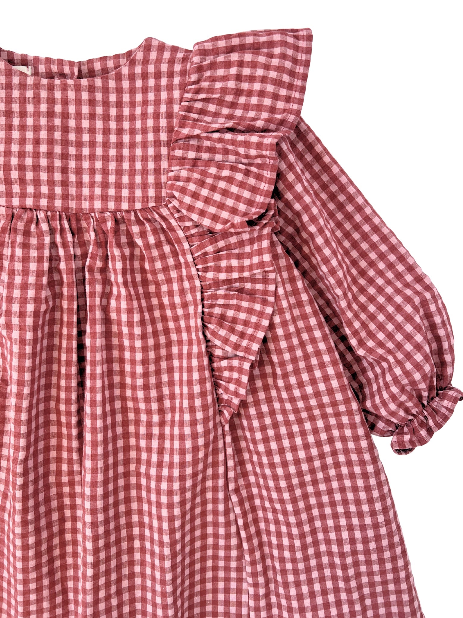 Sukienka z bawełnianej kratki vichy w przepięknym odcieniu różu i bordo. Must- have na jesień!