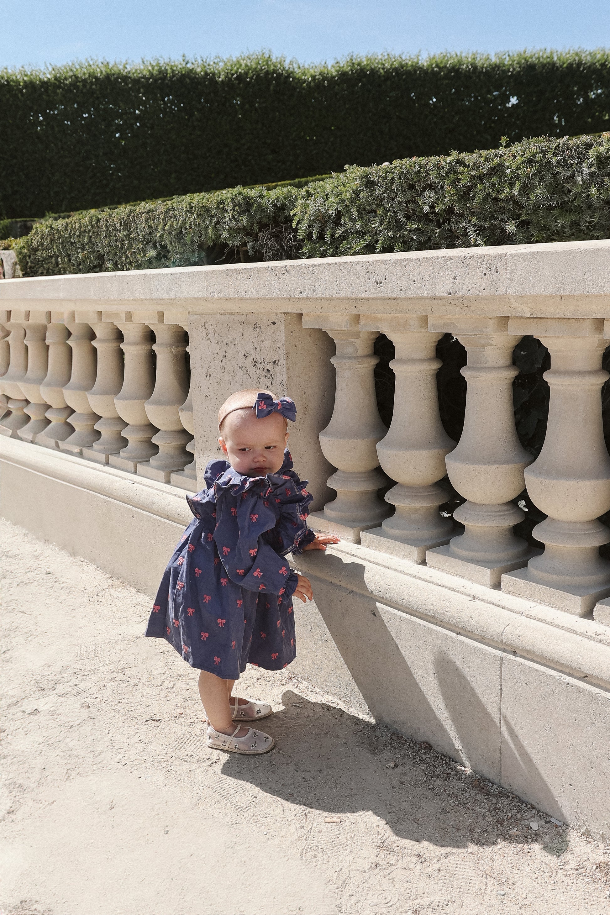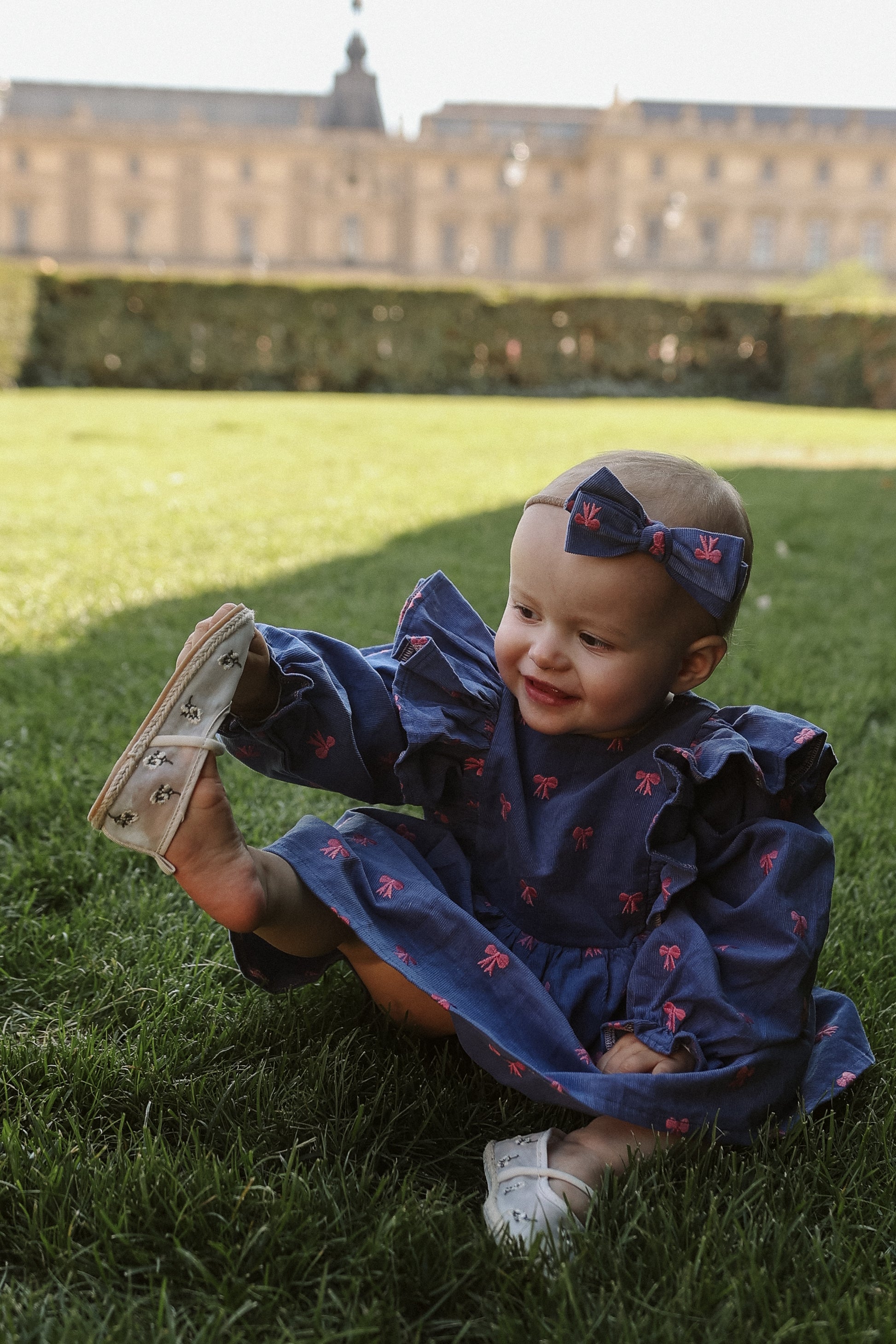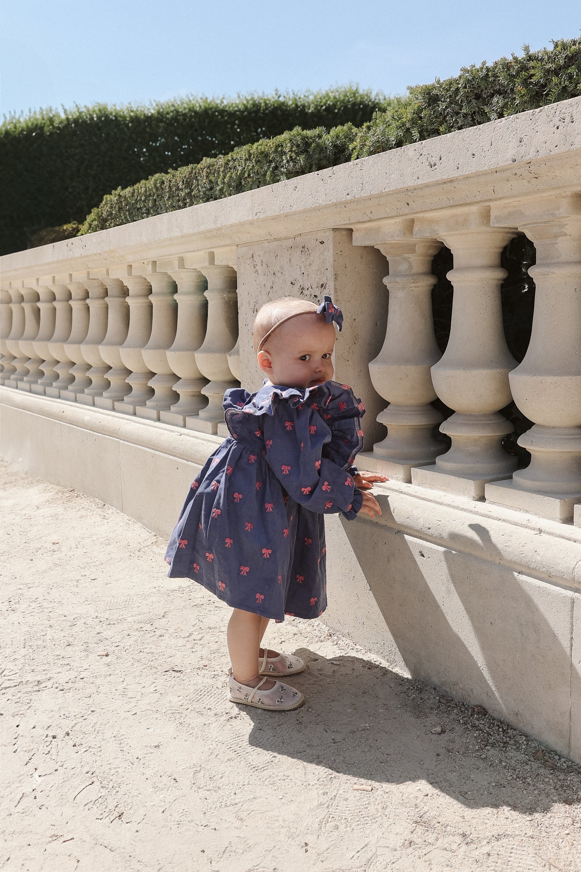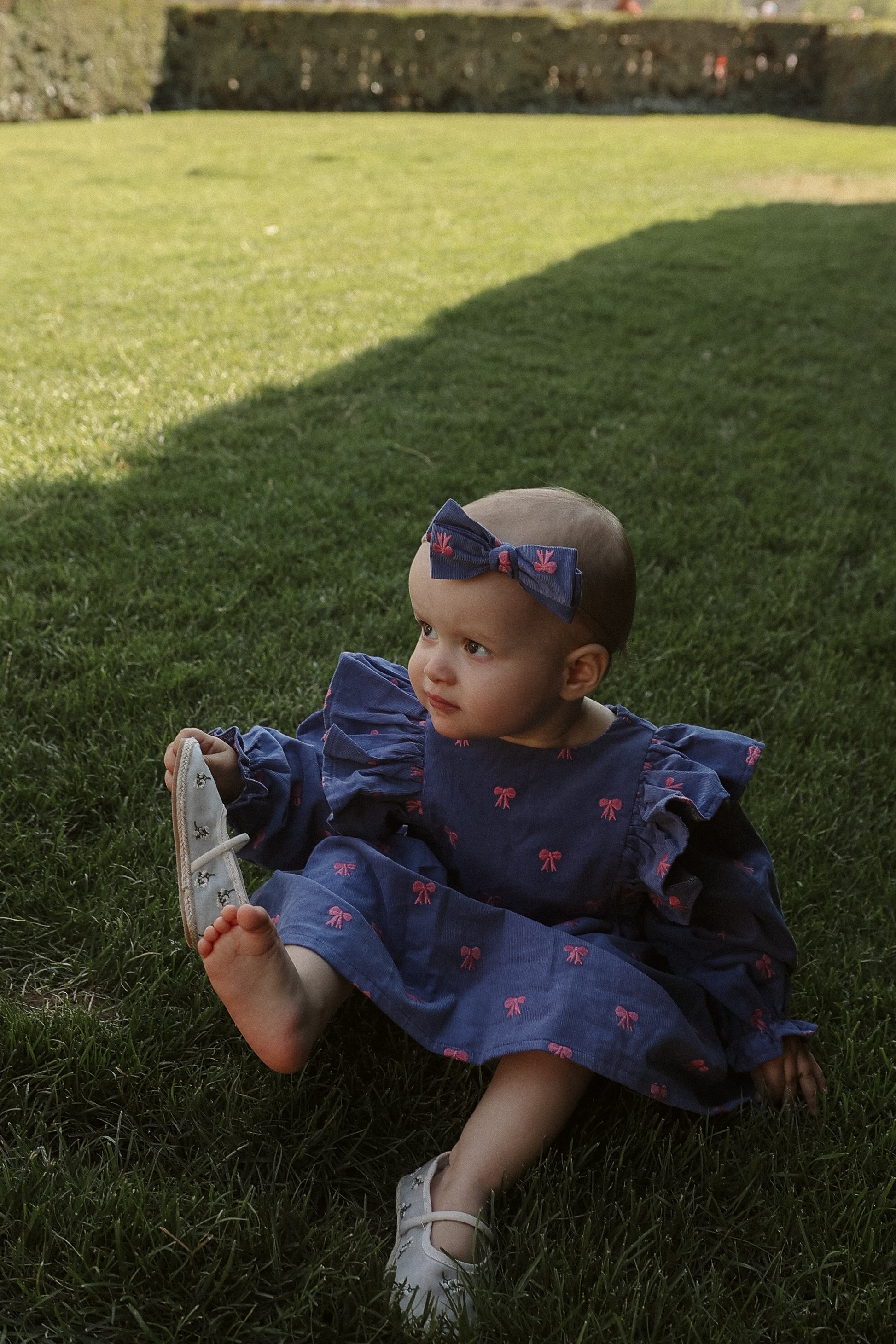 Sukienka na specjalne okazje- z bawełnianego sztruksu w kokardy.