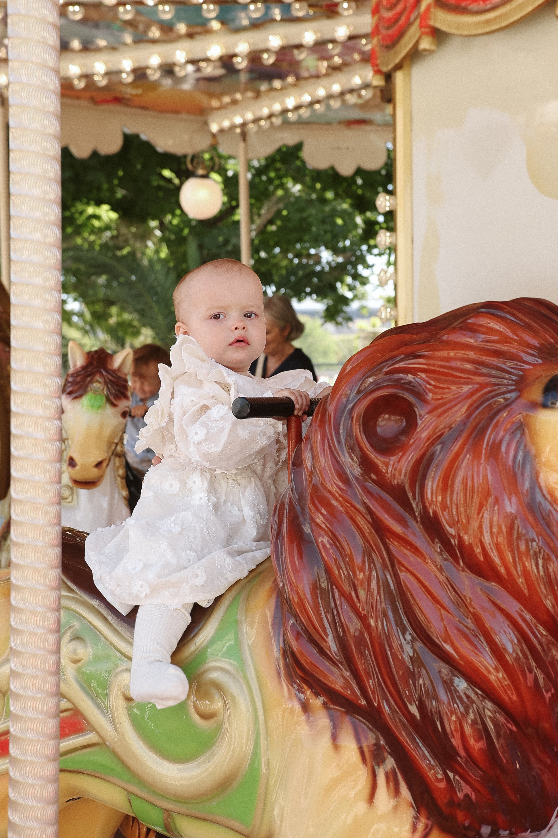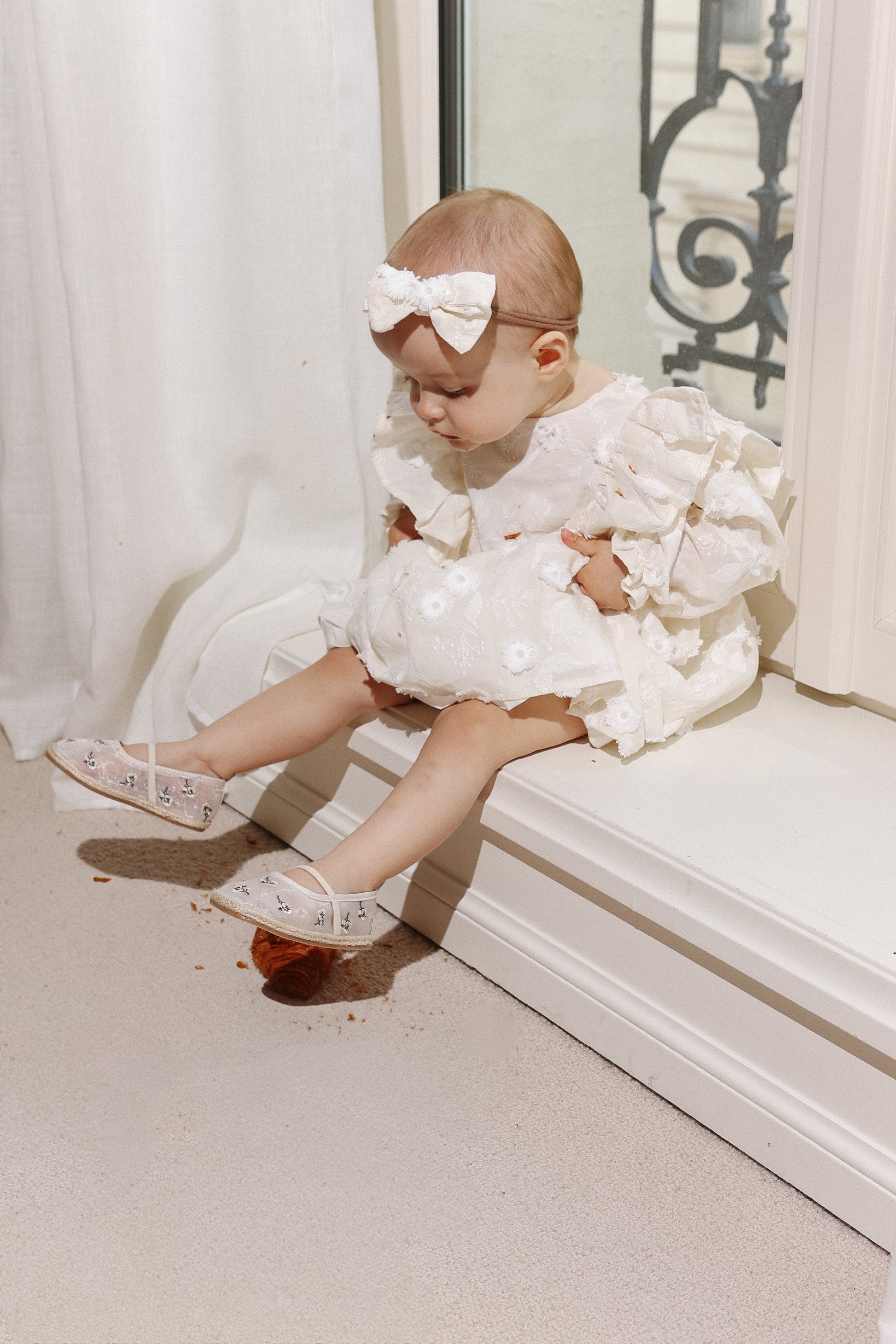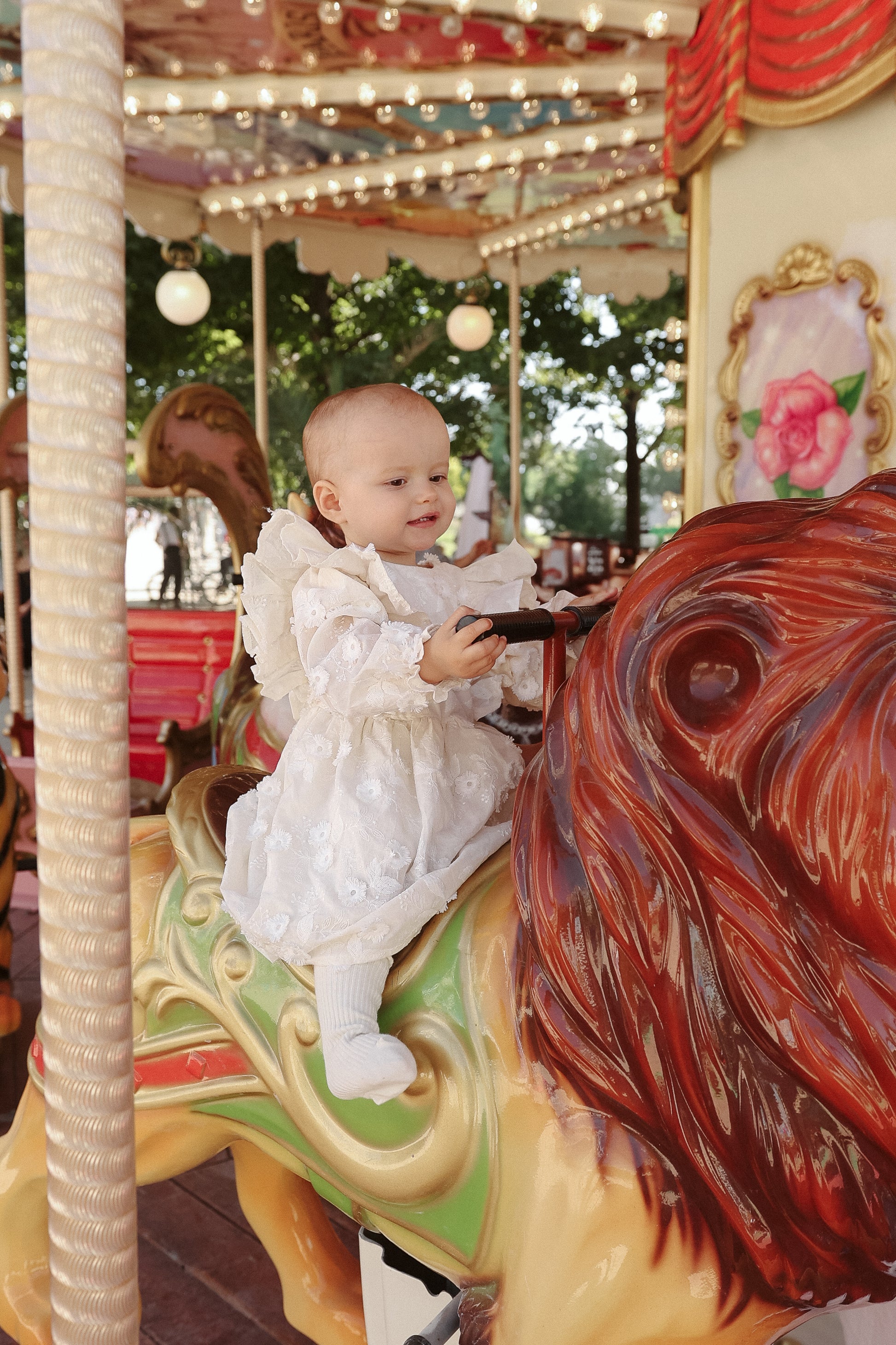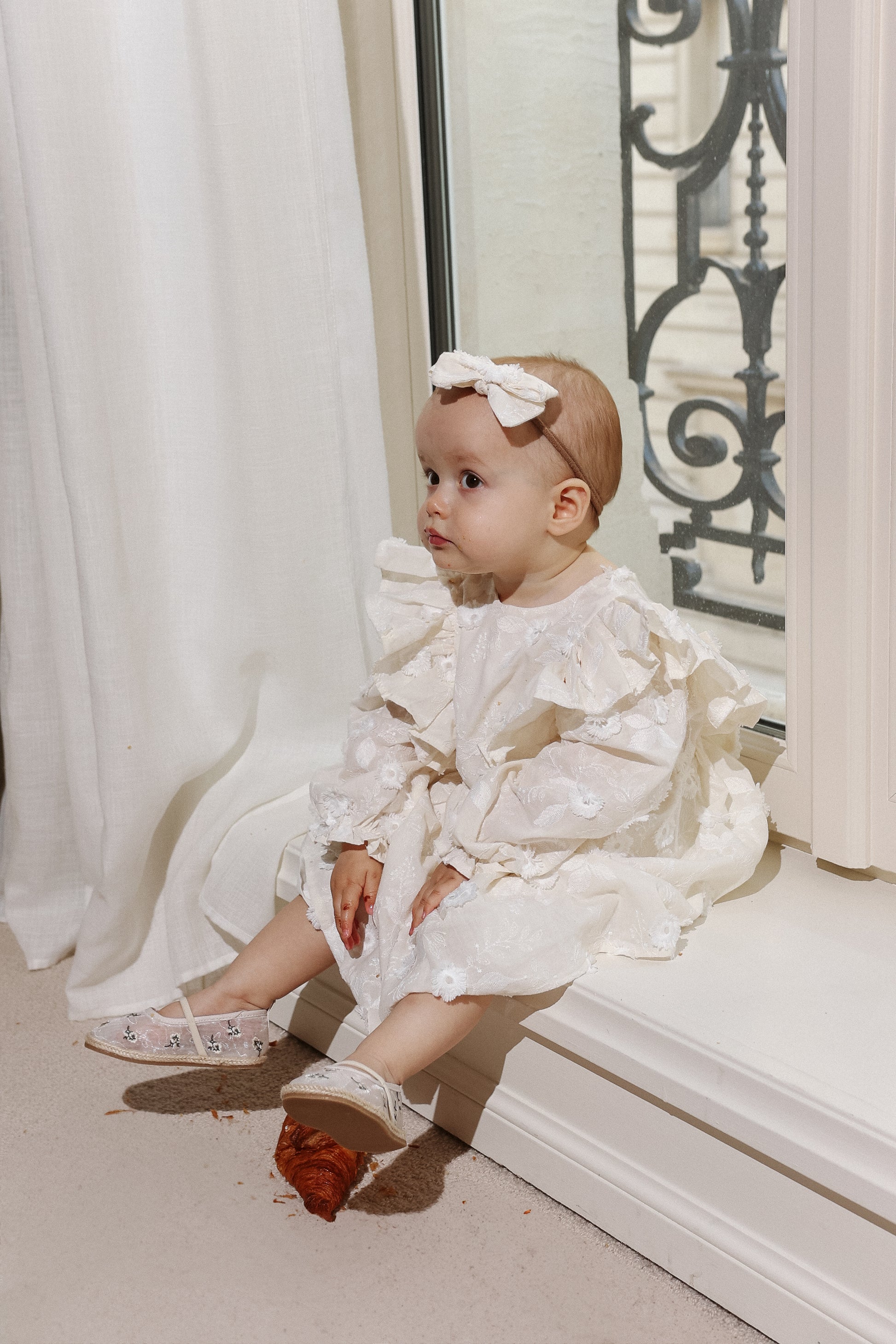 Sukienka na specjalne okazje- z bawełny w haftowane kwiaty, rozkloszowany dół, długi rękaw, delikatne wycięcie na plecach.